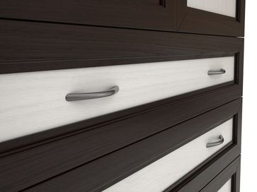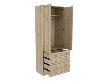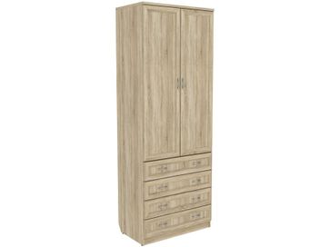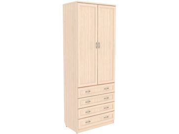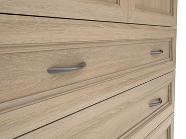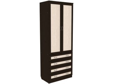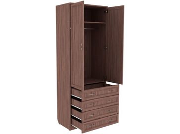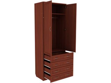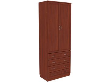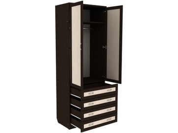 Преимущества: <br> комбинированный — отделение со штангой и четыре ящика;<br> металлические ручки — практичные и долговечные;<br> роликовые направляющие в ящиках — надежный механизм;<br> объемная рамка МДФ на фасадах;<br> универсальный — в спальню, гостиную, прихожую.<br>