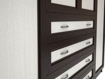 Комбинированный распашной шкаф Мерлен 110 с четырьмя ящиками по центру. Идеальный вариант для спальни, гостиной, молодежной комнаты или квартиры-студии. Большое количество отделений поможет вам навести порядок в одежде, обуви, белье и аксессуарах.<br>
