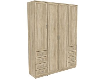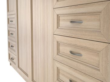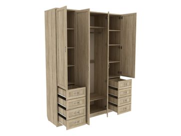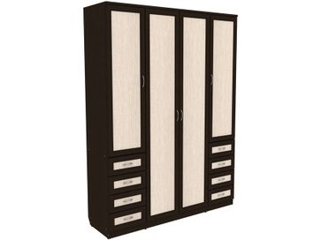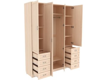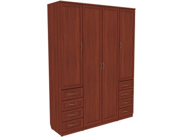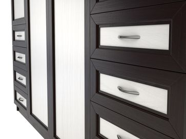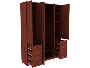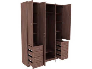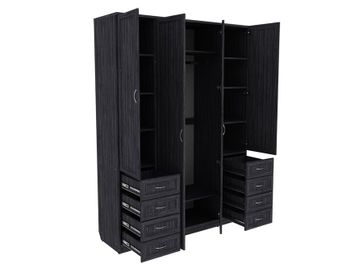 Преимущества: <br> большое отделение со штангой — для вещей на плечиках;<br> восемь ящиков — отличная альтернатива комоду;<br> два отделения с полками — для белья;<br> роликовые направляющие в ящиках — надежный механизм;<br> объемная рамка МДФ на фасадах;<br> металлические ручки — прочные и долговечные;<br> универсальный — для спальни, гостиной, квартиры-студии.<br>