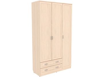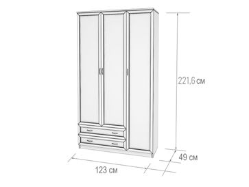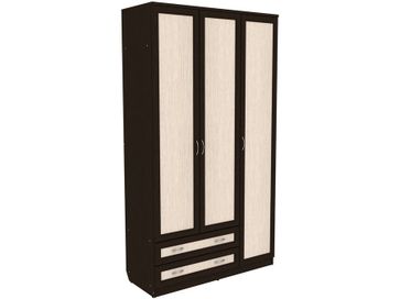 Трехдверный распашной шкаф Мерлен 114 с двумя ящиками. За левыми створками есть отделение с широкой штангой, справа — отсек с полками. Такой шкаф идеален для спальни, гостиной, молодежной комнаты или квартиры-студии. В нем все ваши вещи, одежда и обувь всегда будут в порядке и быстром доступе.<br>