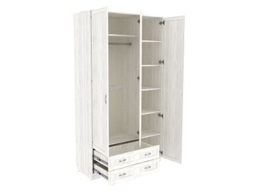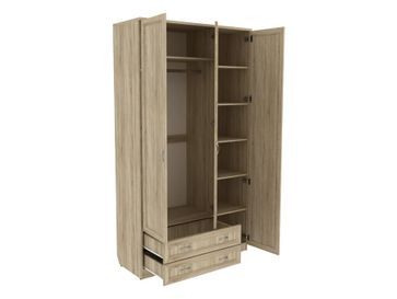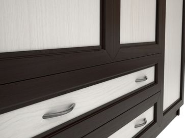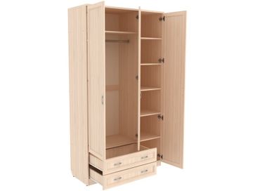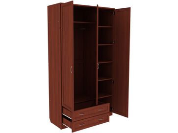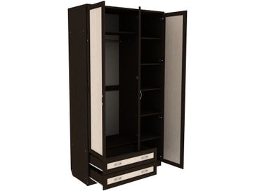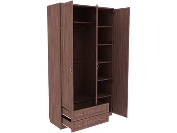 Преимущества: <br> отделение со штангой — для длинной и верхней одежды на плечиках;<br> два широких ящика — для аксессуаров;<br> отсек с полками — для белья;<br> роликовые направляющие — надежный механизм;<br> объемная рамка МДФ на фасадах;<br> металлические ручки — аккуратные и крепкие;<br> универсальный — для гостиной, спальни, квартиры-студии.<br>