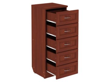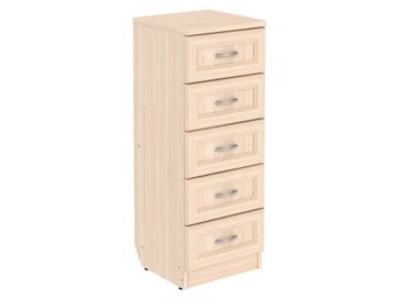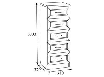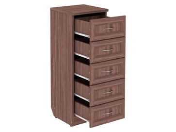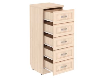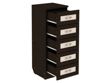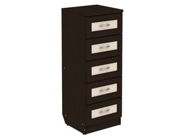 Характеристики: <br> Материал корпуса: ЛДСП 16 мм.<br> Материал фасада: ЛДСП, МДФ.<br> Материал дна ящика: ДВП ламинированная с одной стороны, без усиления.<br> Материал задней стенки: облагороженный ДВП белого цвета.<br> Материал ручек: металл.<br> Внутренние габариты ящиков, 5шт. (ШхГ): 702 х 284 мм.<br> Высота ящика по бортику, 5шт.: 120 мм.<br> Максимальная нагрузка на ящик: до 5 кг.<br> <br> None Страна производства: Россия