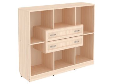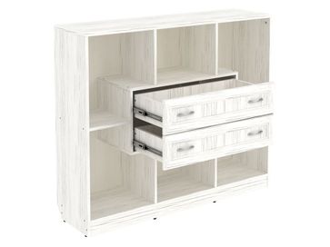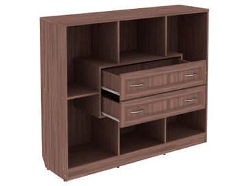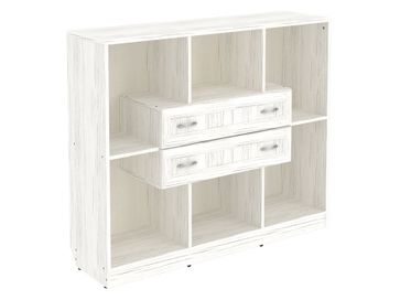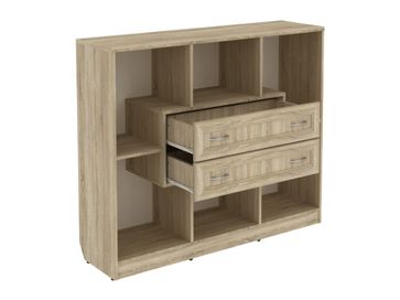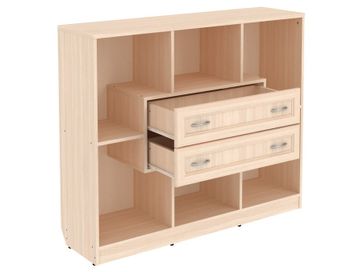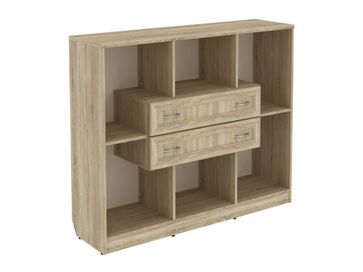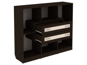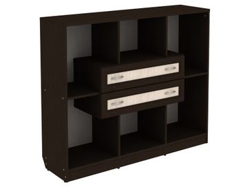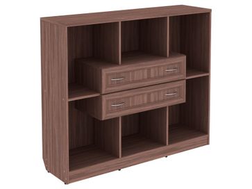 Изделие представляет собой комбинацию открытых ниш и двух выдвижных ящиков, расположенных по центру.<br>