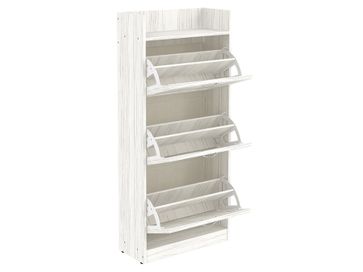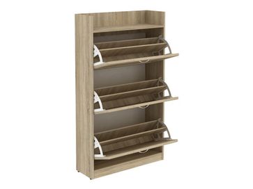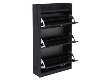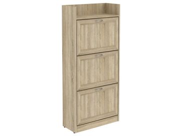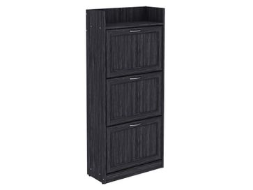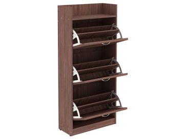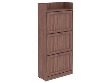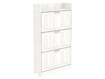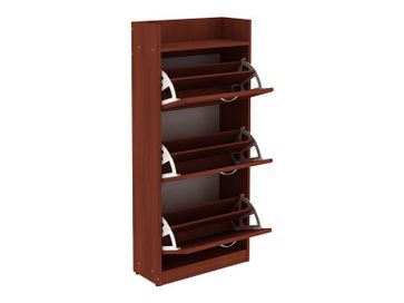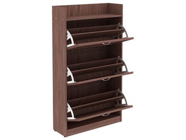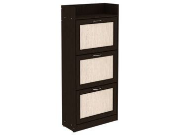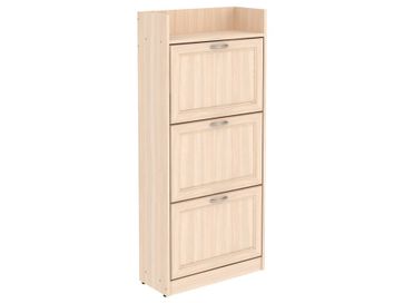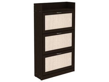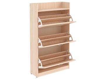 Характеристики:<br> Материал корпуса: ЛДСП 16 мм.<br> Материал фасада: ЛДСП, МДФ.<br> Материал ручек: металл.<br> Механизм открывания: откидной.<br> Вместимость: до 18 пар обуви. В каждый отсек входит до 6 пар обуви.<br> Материал задней стенки: облагороженный ДВП белого цвета.<br> <br> Обратите внимание! Производитель не осуществляет срез под плинтус на боковинах модели.<br> None Страна производства: Россия