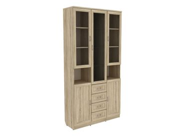 Большой шкаф-витрина с ящиками Мерлен поможет красиво и практично оформить домашнюю библиотеку или зону хранения документов в офисном пространстве.<br> Преимущества: <br> практичное хранение — внутреннее наполнение представлено и выдвижными ящиками, и полочками за распашными дверцами;<br> цветовые решения — множество различных древесных оттенков позволит вам подобрать идеальное исполнение;<br> зеркальная стенка — центральная секция оснащена тремя стеклянными полками и зеркальным полотном, это создает особенно привлекательный образ.<br><br> Характеристики: <br> Материал корпуса: ЛДСП 16 мм.<br> Материал фасада: ЛДСП, МДФ, стекло.<br> Материал ручек: металл.<br> Тип направляющих: роликовые, шариковые только в цвете арктика.<br> Материал задней стенки: облагороженный ДВП белого цвета.<br> Ориентация сборки: только так, как представлено на изображении.<br> Обратите внимание! Шкаф в цвете молочный дуб комплектуется матовыми стеклами, у моделей в остальных цветах стекла прозрачные. None Страна производства: Россия