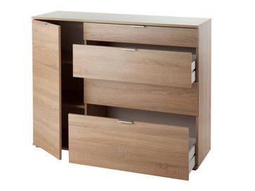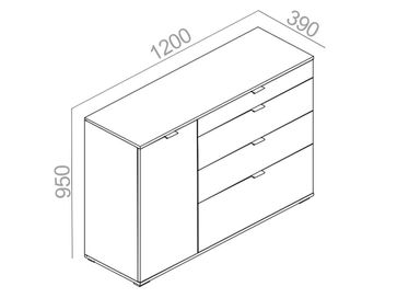 Комод Энни-3 — достаточно практичная и вместительная модель. Слева за дверкой расположены полки, а справа четыре выдвижных ящика. Благодаря разной высоте ящиков можно распределить вещи по отделам в зависимости от их функций.<br>