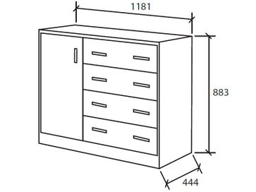 Комод КМ-2 со шкафчиком с полками и четырьмя выдвижными ящиками. Классическое решение для хранения вещей в полном порядке. Подойдет для любой комнаты в квартире или доме.<br>