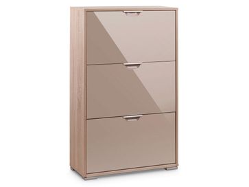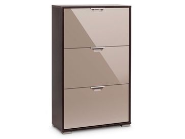 Характеристики: <br> Материал корпуса: ламинированная ДСП.<br> Материал фасада: плита МДФ под глянцевую пленку.<br> Вместимость: до 18 пар обуви.<br> <br> Обратите внимание! Такая модель подходит для хранения только невысокой обуви. Из-за небольшой ширины отсеков, при хранении сапог возможно появление заломов и складок в голенище. Также обувь на слишком высоком каблуке может не поместиться по высоте. None Страна производства: Россия