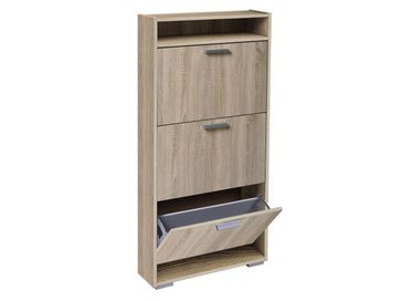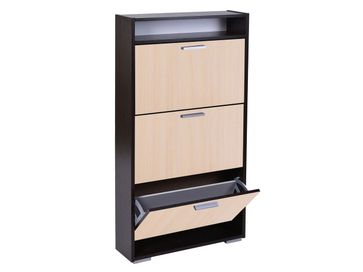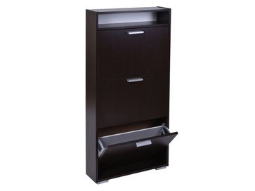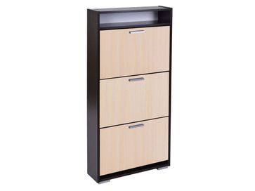 Узкая обувница УК-3 порадует вас своей функциональностью и вместительностью. Глубина изделия составляет всего 170 мм, что позволит разместить модель даже в маленькой прихожей.<br> Система хранения обувницы представлена тремя откидными отделениями и одной открытой полочкой. Открытая ниша прекрасно подойдёт для хранения аксессуаров, средств по уходу за обувью и множества других вещей.<br> Характеристики: <br> Материал корпуса и фасада: ЛДСП 16 мм, кромка ПВХ 0,4 мм.<br> Материал кронштейнов: пластик.<br> Вместимость секции: 2-3 пары обуви.<br> None Страна производства: Россия
