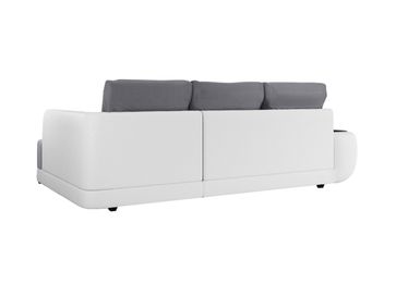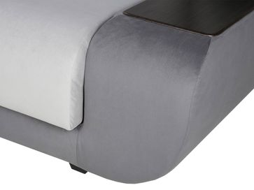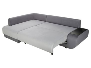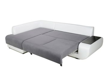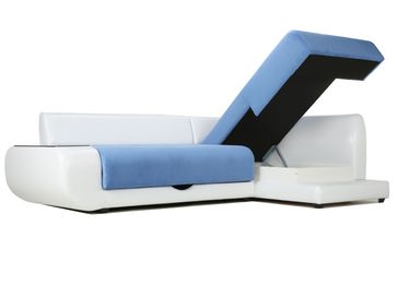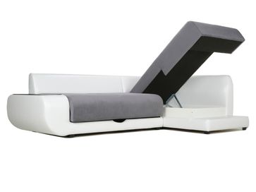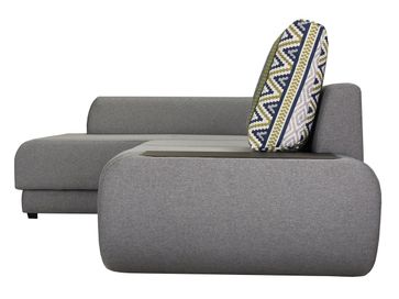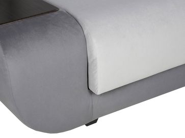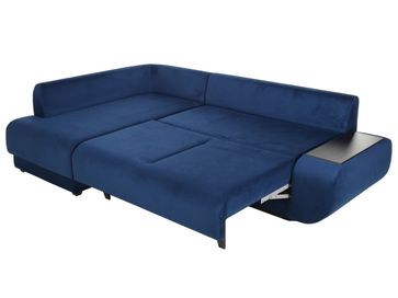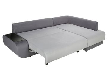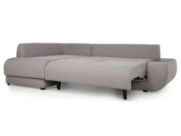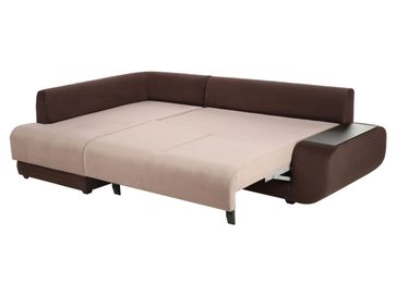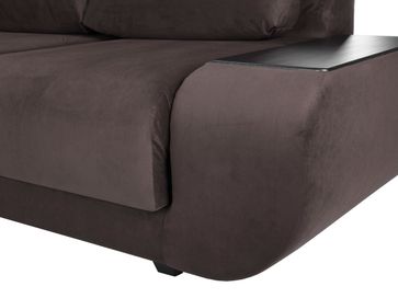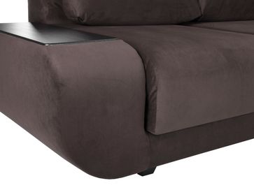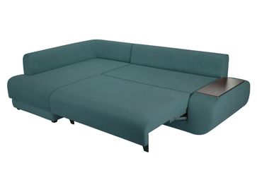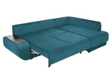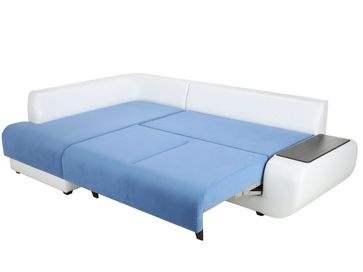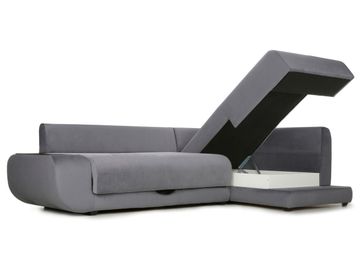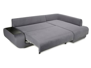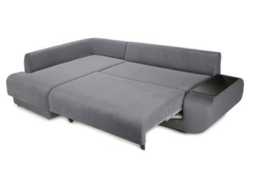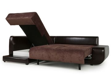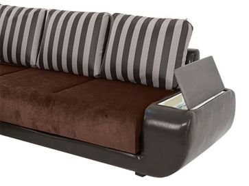 Угловой диван Стингер займет ключевое место в любом интерьере и станет любимым местом отдыха для всей семьи. Задняя стенка обита тем же материалом, что и основная часть, поэтому модель прекрасно подойдет для помещений с открытой планировкой. В сложенном виде образуется спальное место для одного человека, а при необходимости диван легко трансформируется в полноценную кровать. При этом невысокая спинка защищает от соприкосновения со стеной во время сна.<br> Удлиненный подлокотник с одной стороны дивана создает дополнительный комфорт, а широкий подлокотник с другой — служит практичным столиком. Угловая часть с ящиком для белья позволяет расположиться в положении полулежа. Комплектация «С баром» предусматривает нишу в подлокотнике для хранения разных мелочей.<br>