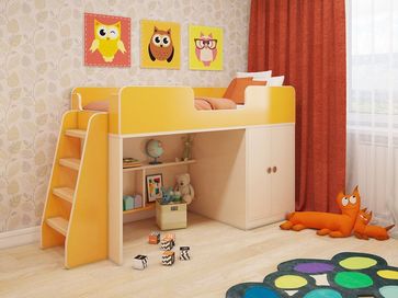 Кровать-чердак Пятая точка Апельсин сделана в России. Имеется несколько способов сборки конструкции, что позволит расположить элементы в соответствии с интерьером и размером комнаты. Обязательная предоплата для заказа этого товара Возможен самовывоз. Есть доставка.