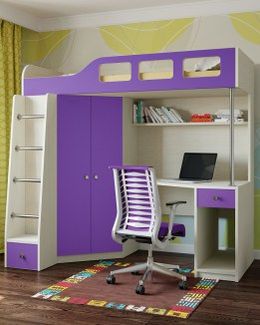 Детская кровать-чердак Астра 7 дуб молочный/фиолетовый РВ мебель порадует вас, ведь на двух квадратных метрах разместится вся необходимая мебель для подростка. Это идеальный вариант для компактных комнат, а также для тех семей, которые ценят простор и многофункциональность. Наличные, Visa/MasterCard, Яндекс.Деньги, WebMoney Возможен самовывоз. Есть доставка.