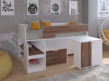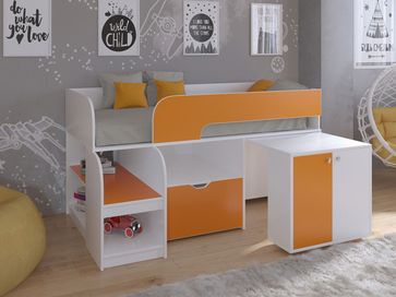 Невысокая детская кровать-чердак Астра 9/9 — это продуманная система хранения, которая позволит ребенку самостоятельно научиться размещать вещи и игрушки по местам. Выдвижной столик-тумба обеспечит удобное рабочее место для игр, учебы или творчества.<br>