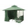 Стальной шатер GA-200 – прекрасная замена беседке, которую придется строить довольно долго и дорого. Преимущества такой конструкции очевидны: она обладает достаточным уровнем комфорта, легко собирается и устанавливается, так же легко разбирается, способна вместить немало людей, а в дополнение к ней идут две скамьи с мягкими подушками и столик. Приятный зеленый цвет, водонепроницаемый навес. Размер стола составляет 112х46х53 см, каждой скамьи – 194х65х83 см. Вес шатра – 80 кг, каркас металлический, размеры – 261х200х273 см. Один из наиболее популярных товаров для создания комфорта на своем участке. В комплекте присутствует москитная сетка, с одной стороны шатра ткань прозрачная, с другой – нет. Прекрасное место для того, чтобы спрятаться от жары в летний день.