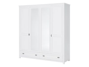 Широкий вместительный классический шкаф; Слева за двумя дверками расположены две штанги; В правой части за одной дверкой находится штанга, а за второй три полки. Сверху также расположена полка; В нижней части два широких выдвижных ящика. Металлические ручки в цвете патинированного серебра подчеркнут элегантность этого предмета мебели;Шкаф внутри оборудован подсветкой - удобно пользоваться в темное время суток. Необходима предоплата. Возможна рассрочка. Страна производства: Польша Возможен самовывоз. Есть доставка.