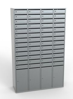 шкаф АШ 52/4-Щ на 56 ячеек под формат А4 с прорезями под корреспонденцию; каркас – профильная труба 20х20 мм; дверки и панели – 0,7 мм; цвет – серый металлик (RAL 9006); замок – индивидуальный, EUROLOCK (1000 ед.); размер ячейки маленькой (52 шт.): 75х250х370 размер ячейки большой (4 шт.): 450х250х370 None