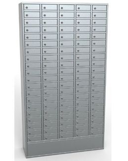 шкаф АШ 100-Д для хранения на 100 ячеек под формат А5 с сервисной дверью; каркас – профильная труба 20х20 мм; дверки и панели – 0,7 мм; цвет – серый металлик (RAL 9006); покрытие: полимерно-порошковое; замок – индивидуальный, EUROLOCK (1000 ед.); размер ячейки - 60х170х305 None