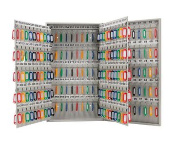 корпус и дверь ключницы выполнены из стали толщиной 0,9 мм.;в ключнице помещается 300 ключей;оснащены металлическими крючками для навешивания ключей;покрыта устойчивой полимерной краской;возможно крепление к стене;запирается на ключевой почтовый замок;в комплект ключниц входят пластиковые цветные брелоки, рассчитанные на количество ключей и самоклеящиеся номерки None
