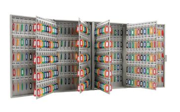 корпус и дверь ключницы выполнены из стали толщиной 0,9 мм.;в ключнице помещается 600 ключей;оснащены металлическими крючками для навешивания ключей;покрыта устойчивой полимерной краской;возможно крепление к стене;запирается на ключевой почтовый замок;в комплект ключниц входят пластиковые цветные брелоки, рассчитанные на количество ключей и самоклеящиеся номерки None