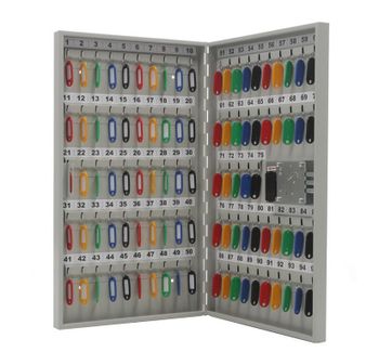 Ключница KEY-95 EL предназначена для хранения ключей в гостиницах, офисах и в других учреждениях;корпус и дверь ключницы выполнены из стали толщиной 0,9 мм.;в ключнице помещается 95 ключей;оснащены металлическими крючками для навешивания ключей;покрыта устойчивой полимерной краской;возможно крепление к стене;запирается при помощи кодового электронного замка PLS-3.2в комплект ключниц входят пластиковые цветные брелоки, рассчитанные на количество ключей и самоклеящиеся номерки None