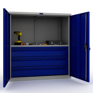 Шкаф инструментальный TC-1095-001030 предназначен для хранения инструментов, слесарных приспособлений и других изделий на предприятиях, мастерских, автосервисах. None