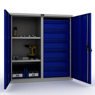 Шкаф инструментальный TC-1095-100206 предназначен для хранения инструментов, слесарных приспособлений и других изделий на предприятиях, мастерских, автосервисах. None