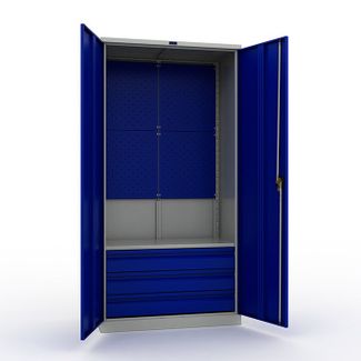 Шкаф инструментальный TC-1995-041030 предназначен для хранения инструментов, слесарных приспособлений и других изделий на предприятиях, мастерских, автосервисах None