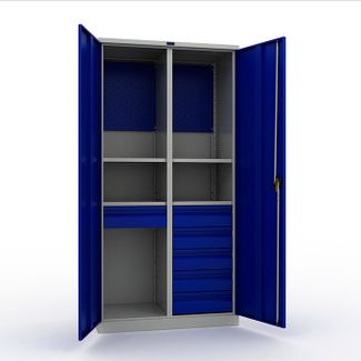 Шкаф инструментальный TC-1995-120406 предназначен для хранения инструментов, слесарных приспособлений и других изделий на предприятиях, мастерских, автосервисах None