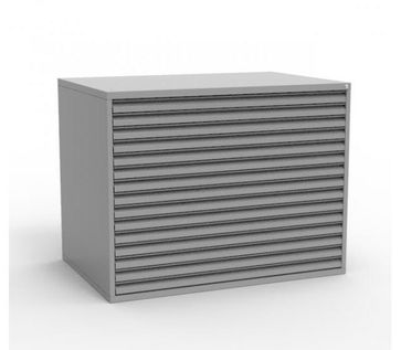 Технические характеристики: картотечные шкафы РК-А0-15 предназначены для хранения документов больших форматов А0 (топографические карты, схемы, чертежи и др. документация); изделие изготовлено из металла толщиной 1 мм; количество ящиков - 15 шт.;размер ящика - 44,5х1224х873 мм; направляющие шариковые телескопические; нагрузка на один ящик не более 30 кг; наличие общего замка; цвет - серый металлик RAL 9006; None