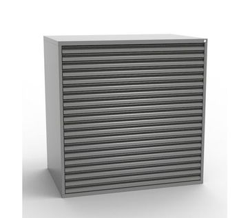 Технические характеристики: картотечный шкаф РК-А0-20 для большого формата имеет 20 выдвижных ящиков под формат А0 с общим запирающим замко; изделие изготовлено из металла толщиной 1 мм; количество ящиков - 20 шт.; направляющие шариковые телескопические; нагрузка на один ящик не более 30 кг; наличие общего замка; цвет - серый металлик RAL 9006; None