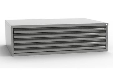 Технические характеристики: картотечные шкафы К5 (А0) предназначены для хранения документов больших форматов А0 (топографические карты, схемы, чертежи и др. документация); изделие изготовлено из металла толщиной 1 мм; количество ящиков - 5 шт.; направляющие шариковые телескопические; нагрузка на один ящик не более 30 кг; наличие общего замка; цвет - серый металлик RAL 9006; None