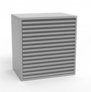 Технические характеристики: картотечные шкафы РК-А1-15 предназначены для хранения документов больших форматов А1 (топографические карты, схемы, чертежи и др. документация); изделие изготовлено из металла толщиной 1 мм; количество ящиков - 15 шт.;размер ящика - 44,5х864х638 мм; направляющие шариковые телескопические; нагрузка на один ящик не более 30 кг; наличие общего замка; цвет - серый металлик RAL 9006; None