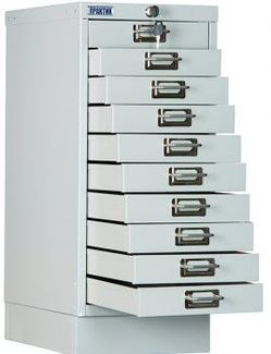Габариты внешние, ммвысота - 650ширина - 347глубина - 546Внутренние размеры ящика, ммвысота - 50/155ширина - 308глубина - 508 4 ящика под формат А3Ключевой замок None