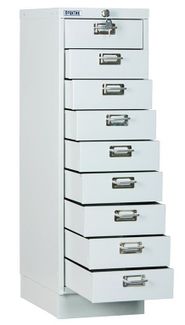 ПРАКТИК MDC-A4/910/9 предназначен для систематизации и удобного хранения документов формата А4, канцелярских принадлежностей и мелких предметов; полное выдвижение ящиков даже при полной загрузке; наличие центрального ключевого замка; каждый ящик комплектуется информационной табличкой; MDC-A4/910/9 поставляются в собранном виде; цвет: серый полуматовый (RAL 7038); тип покрытия: порошковое, антикоррозийная обработка; 9 ящиков None