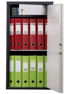 предназначены для хранения документов в офисе сварная конструкция из стали толщина лицевой панели – 1,2 мм толщина боковых стенок – 1.2 мм комплектуются ключевыми замками + электронный замок PLS-1 в верхней секции оборудованы встроенным отделением, запирающимся на ключ (трейзером) комплектуются 1 переставой полкой поставляются в собранном виде вмещает 10 папок (папки 60 мм) цвет: светло-серый структурированный тип покрытия: порошковое None