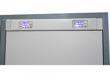 В крышке шкафа, в каждом отделении расположены отверстия для выхода воздуха. В комплекте фланцы для подключения к внешней системе вентиляции.