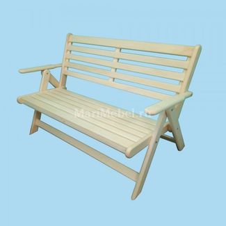 Складывается скамья выкручиванием двух болтов. Так же предмет мебели и раскладывается. При этом в складном виде габариты скамейки из липы сразу уменьшаются втрое.