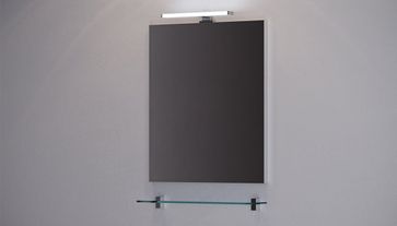 Размер: Ш600хГ120хВ8мм Материалы: зеркальное полотно, ЛДСП, LED-светильник, сенсорный включатель на взмах