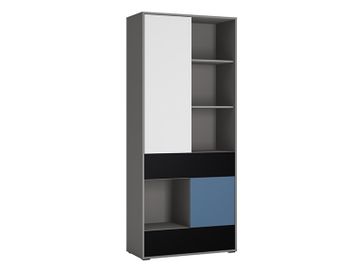 Высокий книжный стеллаж с большим количеством полок, двумя дверками и вместительными выдвижными ящиками; За верхней дверкой три полки, а за нижней - одна; Дверки и ящики открываются за ручку-выемку в фасаде. Необходима предоплата. Возможна рассрочка. Страна производства: Польша Возможен самовывоз. Есть доставка.