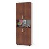 Простой лаконичный дизайн стеллажа с закрытыми секциями и открытой нишей способен стать хорошим дополнением как домашнего, так и офисного интерьера. Вместительный стеллаж сверху и снизу имеет закрытые секции, за распашными дверками которых, находятся полки для хранения книг, документов и других принадлежностей. Между закрытыми секциями предусмотрена удобная полочка для быстрого доступа к самым необходимым папкам, книгам или документам. Задняя стенка стеллажа с внутренней стороны выполнена из ДВП серого цвета. Корпус и полки изготовлены из качественного ЛДСП, что обеспечивает долговечность и прочность деталей. Модель оснащена пластиковыми ножками. None Есть доставка.