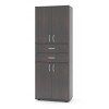 Универсальный шкаф-стеллаж закрытого типа оборудован двумя закрытыми шкафчиками и выдвижными ящиками. Закрытые отделения, расположенные сверху и снизу снабжены съемными полками, на которых можно разместить различные папки с документами, важные бумаги и отчеты. Фасады закрытых шкафчиков защищают содержимое стеллажа от попадания пыли, солнечного света и влажного воздуха. Два выдвижных ящика расположенные в центре можно использовать для хранения как документов и канцелярских принадлежностей, так и для различных мелких предметов. Модель установлена на пластиковые ножки. None Есть доставка.