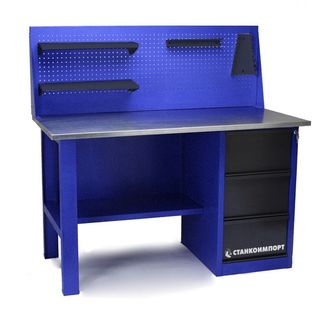Слесарные верстаки СТАНКОИМПОРТ применяются в профессиональных авторемонтных мастерских, тюнинг ателье, частных гаражах и на производстве. Вестаки используются для выполнения различных работ по ремонту, сбору, обработке деталей, и является отличным рабочим местом для мастеров. Производятся данные верстаки на современном промышленном предприятии на территории РФ. Все основные технологические операции, такие как раскрой, резка, гибка, сварка и окраска листового металла осуществляется на высокоточном металлообрабатывающем оборудовании ведущих европейских производителей Италии и Дании. Основание верстака изготовлено из высокопрочного листового металла, а столешница из фанеры толщиной 24 мм, обшитой оцинкованным металлом толщиной 1 мм. Прочная конструкция верстака позволяет выдержать нагрузку на столешницу до 300 кг. Верстаки могут содержать в себе до 2 тумб с количеством ящиков от 1 до 5, а так же все модели могут быть дополнительно укомплектованы перфорированным экраном с полками. Ящики очень удобны для хранения инструмента и документации, за сохранность которых отвечает установленный центральный замок. Готовые верстаки покрыты порошковой краской (производство Германия). Все верстаки поставляются к клиенту в разобранном виде, с подробной инструкцией по сборке. None Страна производства: Россия