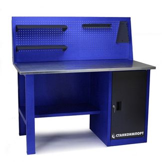 Слесарные верстаки СТАНКОИМПОРТ применяются в профессиональных авторемонтных мастерских, тюнинг ателье, частных гаражах и на производстве. Вестаки используются для выполнения различных работ по ремонту, сбору, обработке деталей, и является отличным рабочим местом для мастеров. Производятся данные верстаки на современном промышленном предприятии на территории РФ. Все основные технологические операции, такие как раскрой, резка, гибка, сварка и окраска листового металла осуществляется на высокоточном металлообрабатывающем оборудовании ведущих европейских производителей Италии и Дании. Основание верстака изготовлено из высокопрочного листового металла, а столешница из фанеры толщиной 24 мм, обшитой оцинкованным металлом толщиной 1 мм. Прочная конструкция верстака позволяет выдержать нагрузку на столешницу до 300 кг. Верстаки могут содержать в себе до 2 тумб с количеством ящиков от 1 до 5, а так же все модели могут быть дополнительно укомплектованы перфорированным экраном с полками. Ящики очень удобны для хранения инструмента и документации, за сохранность которых отвечает установленный центральный замок. Готовые верстаки покрыты порошковой краской (производство Германия). Все верстаки поставляются к клиенту в разобранном виде, с подробной инструкцией по сборке. None Страна производства: Россия