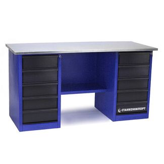- Стол для слесарных работ 1600 мм 2 тумбы с 5- ю ящиками без экрана по выгодной цене 36 990 р. руб.;