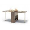 Практичный раскладной стол на металлических ножках представляет собой практичную и функциональную модель, которая идеально подойдет для небольших помещений. Компактный раздвижной стол в сложенном виде можно использовать как тумбу или пристенный столик, на половину разложенный стол подойдет для небольшого праздничного обеда. Для более масштабного застолья стол трансформируется в достаточно объемный обеденный стол. Под центральной столешницей расположено вместительное отделение для хранения, в которое можно положить посуду, скатерть. Металлические ножки-опоры, которые поддерживают каждую поверхность придают столу устойчивость и интересный внешний вид. При складывании стола из раскрытого положения в книжку, ножки можно очень легко и быстро выкрутить, и сложить в предусмотренный внутри стола ящик. Еще одно приятное дополнение – это ручки на корпусе, которые помогут без труда переместить столик в любое помещение. None Есть доставка.