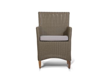 С удобными подлокотниками на деревянных ножках. Комплектуется мягкой подушкой для максимального комфорта. Каркас изделия выполнен из прочного алюминия, что гарантирует продолжительный срок службы модели. Изделие отличается повышенным удобством за счет изогнутой спинки. Стул Пестум - оригинальное сочетание природных мотивов, современного стиля и практичности.