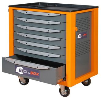 Тележка инструментальная Toollbox Standart TBS-7. Размеры ящиков рассчитаны под ложементы для инструментов практически всех производителей, встречающихся на отечественном рынке. Таких, как King Tony, Gedore, Polar, Jonesway, Force, Unior, Sonic. None