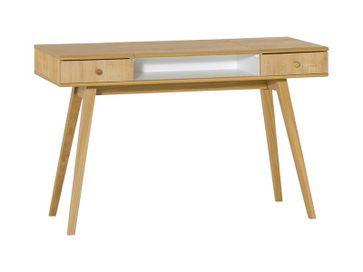 Тулетный в скандинавском стиле доступен в двух цветовых вариантах: с белыми дверцами либо с дверцами в цвете натурального дуба;Справа и слева по одному выдвижному ящику для косметики;Посреди ниша, над которой откидная столешница. На обратной стороне столешницы зеркало. Столешница оборудована специальной фурнитурой, которая предохраняет откидную столешницу от падения вниз - благодаря этому зерколо не разобьется;При сложенной столешнице, талетный столик может быть использован как небольшой письменный стол;Элемент мебели выглядит оригинально за счет белых полок внутри изделия, которые выгодно контрастируют с корпусом натурального дубового цвета;Закругленные деревянные ручки идеально вписываются в эстетику этой коллекции;Благодаря оригинальным ножкам элемент мебели выглядит легче;Передние горизонтальные края мебели сделаны из натурального дуба. Закругленные края более безопасны в использовании. Необходима предоплата. Возможна рассрочка. Страна производства: Польша Возможен самовывоз. Есть доставка.