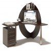 Компьютерный стол угловой с приставной тумбой, сочетающий в себе функциональность, стильный дизайн и овальные формы прекрасно подойдет как для домашнего кабинета, так и для учащегося или оформления офисного помещения. Оригинальный компьютерный стол оборудован столешницей анатомической формы для удобного расположения рук – это снимает напряжение с локтей, а также приставной тумбой с четырьмя выдвижными ящиками для размещения тетрадей, канцелярских принадлежностей и столешницей, образующей со столешницей стола единую рабочую поверхность. На задней необычной панели сверху имеется овальная полка для размещения сувениров или принтера небольшого размера. Стол установлен на металлические опоры.
