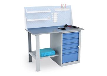 Верстак сборно-разборный ВЛ-2ЦФ-ОПуД (без экрана), модульный. Предназначен для слесарных и сборочных работ. Допустимая нагрузка на столешницу — 200 кг. None